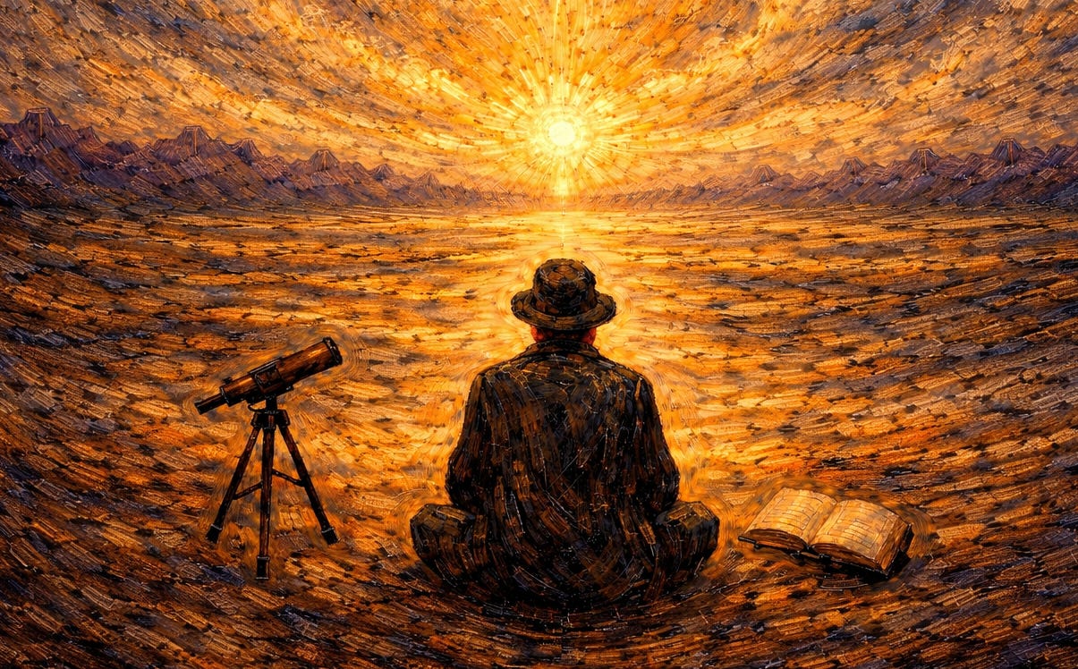 Advaita Vedānta goes further. It suggests that the very separation between observer and observed is an illusion. When that illusion dissolves, what remains is Brahman — not a being, not a deity, not an object of belief, but pure being itself.
